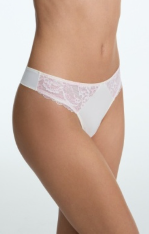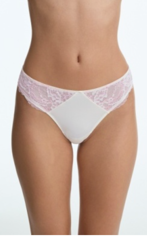Minx Lace Trim Thong - Whipped Cream/Lilac Pink