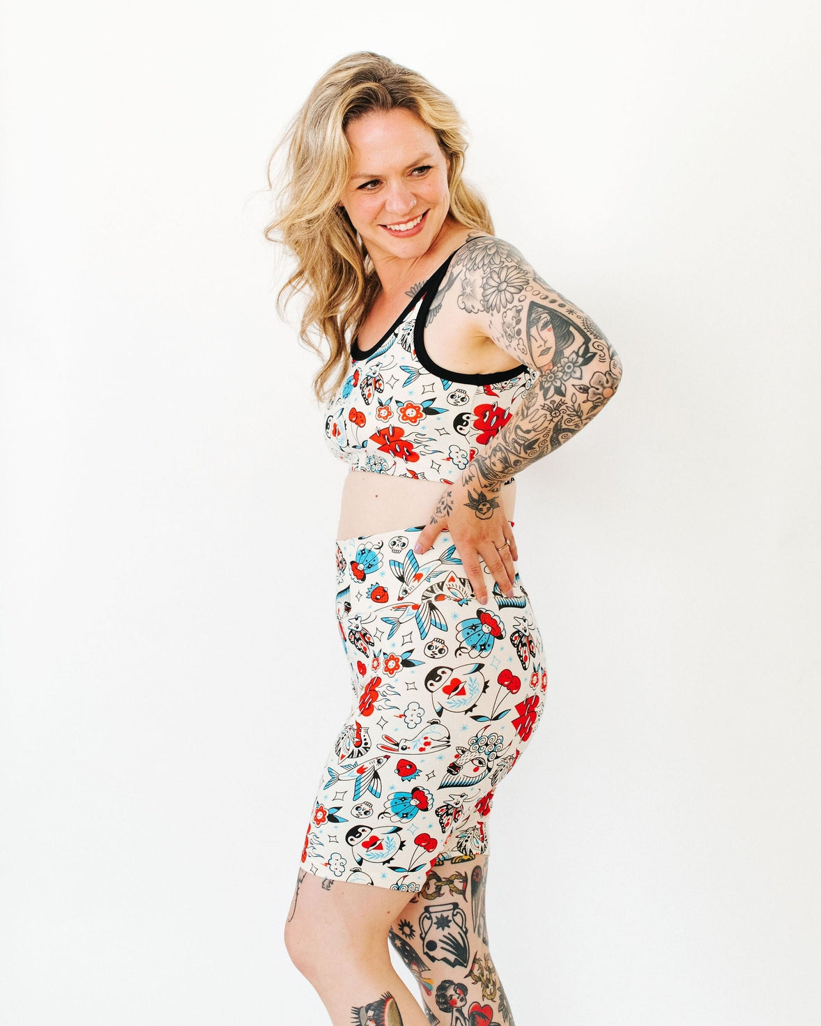 This ink-redible print is illustrated by Portland, OR tattoo artist Connie Gabbert. Her work is a perfect mix of whimsy and traditional style, and every one of these adorable characters pops to life. We wanted to cover our whole bodies with her tattoos, so we thought, what’s better than covering thundies with them? Now you can be inked up whenever you want!