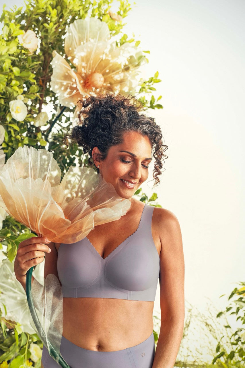 Elevate your comfort with the beautifully structured Evelyn Bra. A perfect blend of dramatic lift with a smooth seamless design, engineered to adapt and fit you perfectly. Featuring scalloped edges that prevent cutting into delicate breast tissue, with patented EB Core® for 3D lift, plus a smoothing back band & sides. The ultimate wireless push-up bra.